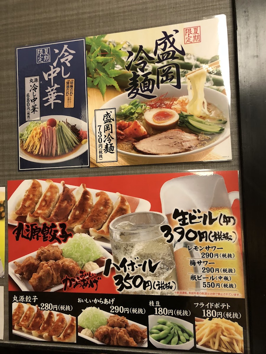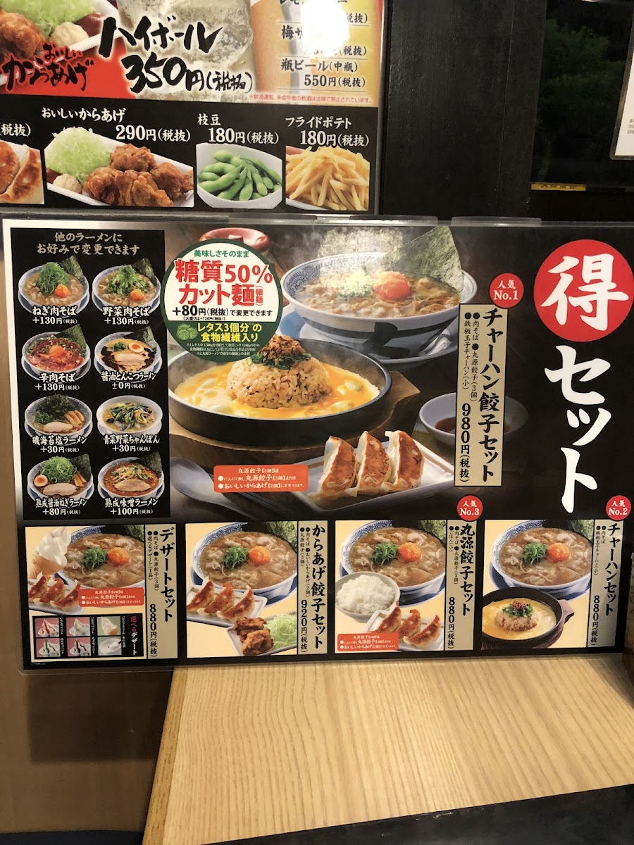 The menu extends beyond ramen, featuring crispy 丸源餃子, available in various quantities starting from JP¥313, and succulent fried chicken options. For a unique spin, don’t miss the theatrical 鉄板炒飯, topped with a sizzling egg right at your table, enhancing the dining experience with a sense of occasion.